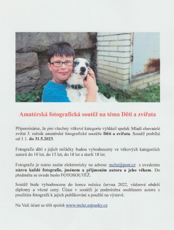 zorganizování fotografické soutěže MCHZ Děti a zvířata 1.1.-31.5.
